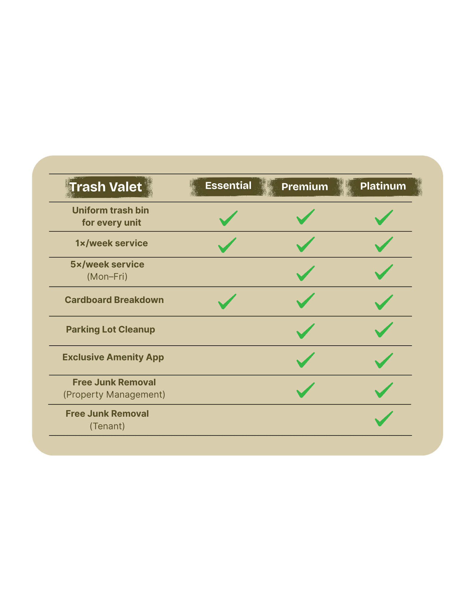 Revenue & ROI: Add this as a standard amenity fee in leases and, if desired, mark up above our rate to create additional monthly income per unit—turning a premium resident amenity into a simple, recurring revenue stream.